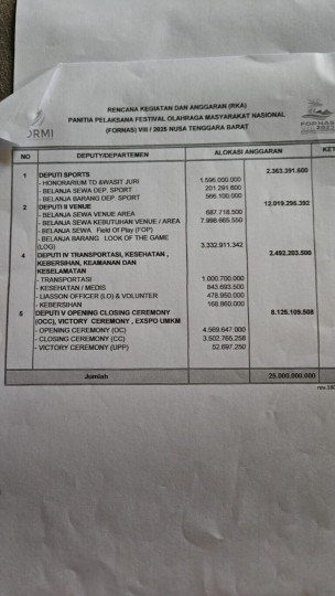 Mengapa alokasi untuk kontingen NTB tidak masuk dalam RKA, dan hanya diakui secara lisan oleh panitia?